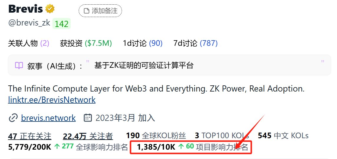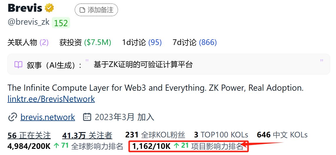 继续聊ZK龙头 Brevis @brevis_zk ,Xhunt上面 Brevis 已经来到了1000名左右的项目排名, 如果能够到500以内,那就是板上钉钉的天王级别项目了,这个指标目前来看准确率相当高