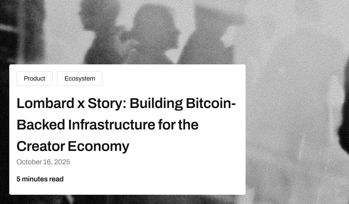 IP巨头Story通过和Lombard @Lombard_Finance 合作,让比特币成为创作者经济的结算与担保层