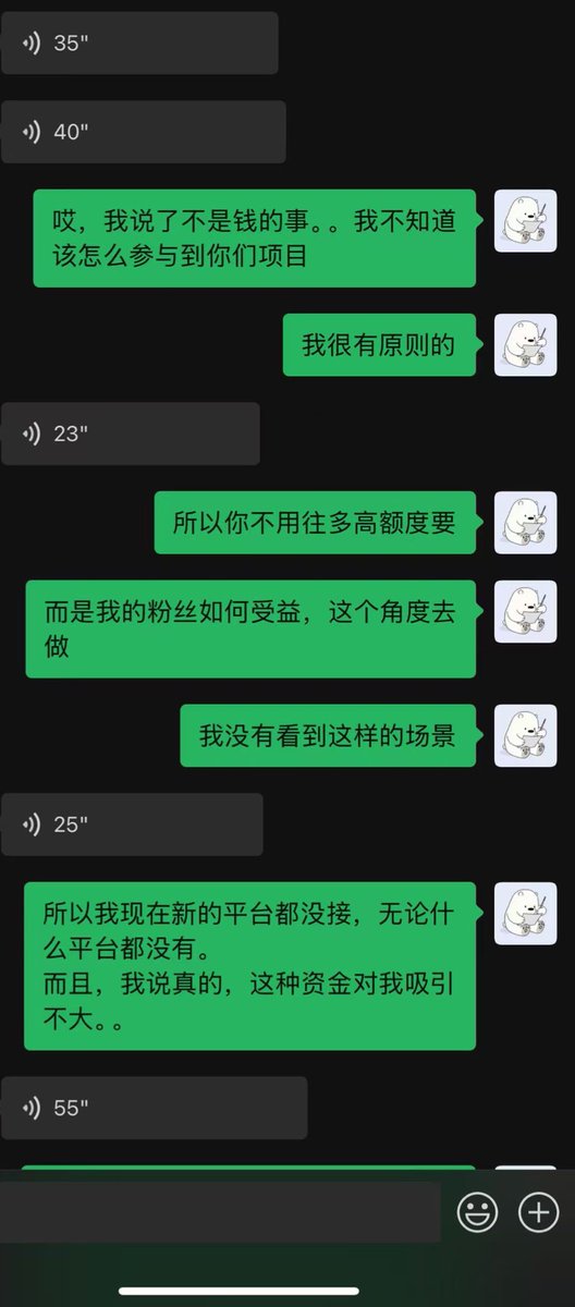 其实不想让谁自尊心受伤,KOL亦有差距,而且我也不觉得我是什么KOL,我只是个普通的交易员罢了,硬来蹭我也没必要。
