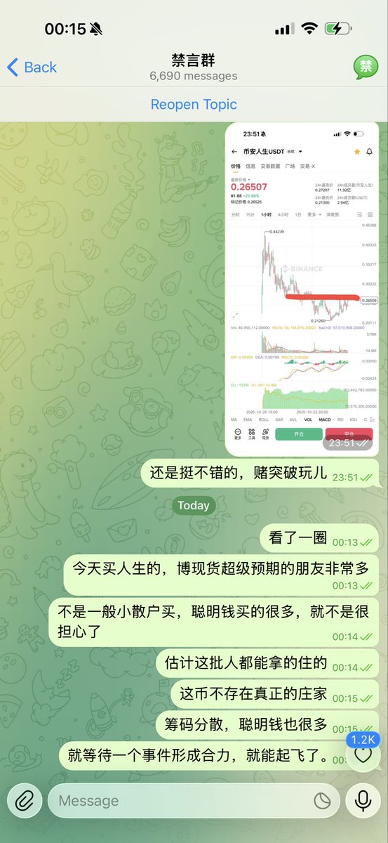 如果你们币安已经有了,就正常使用着,我那群里基本没啥有用的东西,都只是我自己交易时候的自言自语而已,也不存在任何财富密码,一切交易只遵从我自己交易逻辑,我自己亏得起,所以我敢下单。