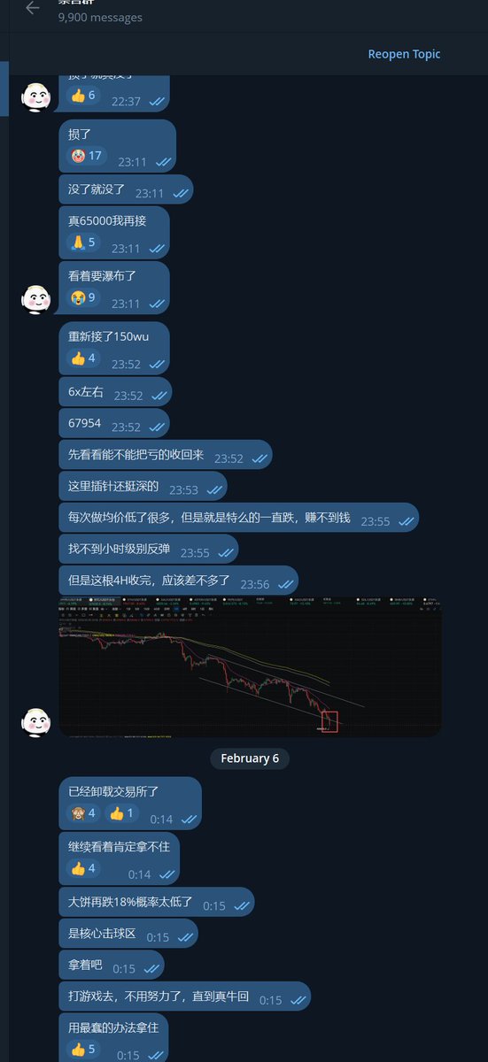 很多人抄底的时候喜欢吹牛逼。有念头抄底的昨天早抄了,不是抄在73000就是抄在68000,要么就金字塔一路抄满。刚刚好在昨天凌晨只抄一笔还抄到大底的都是什么人?几个月没持仓突然就凌晨最低点抄了一下?骗骗自己就行,最后赚没赚钱自己清楚。我20wu开的仓位现在还套在68000等你们来救呢,抄了三次,前面损了两次,跌到59000的时候刚好睡觉,不然跌破60000我估计盯盘的话