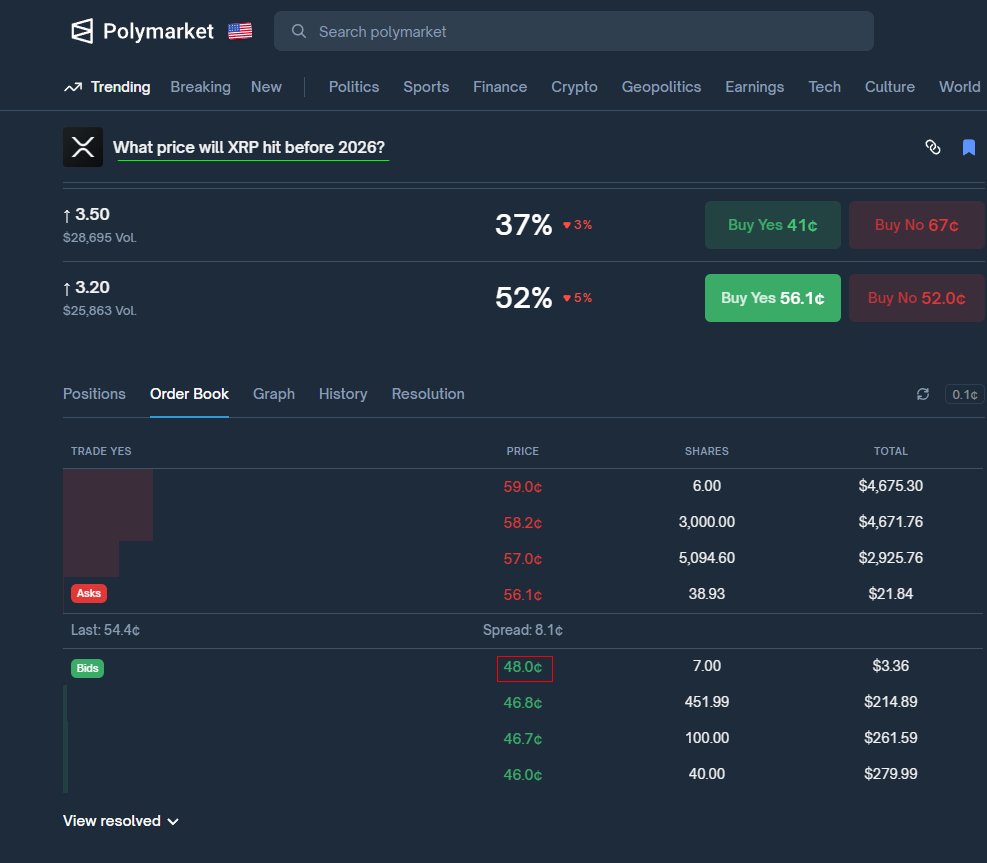 • 如果您以 0.48 美元购买“Yes”,则在 Polymarket 获得 108% 的收益