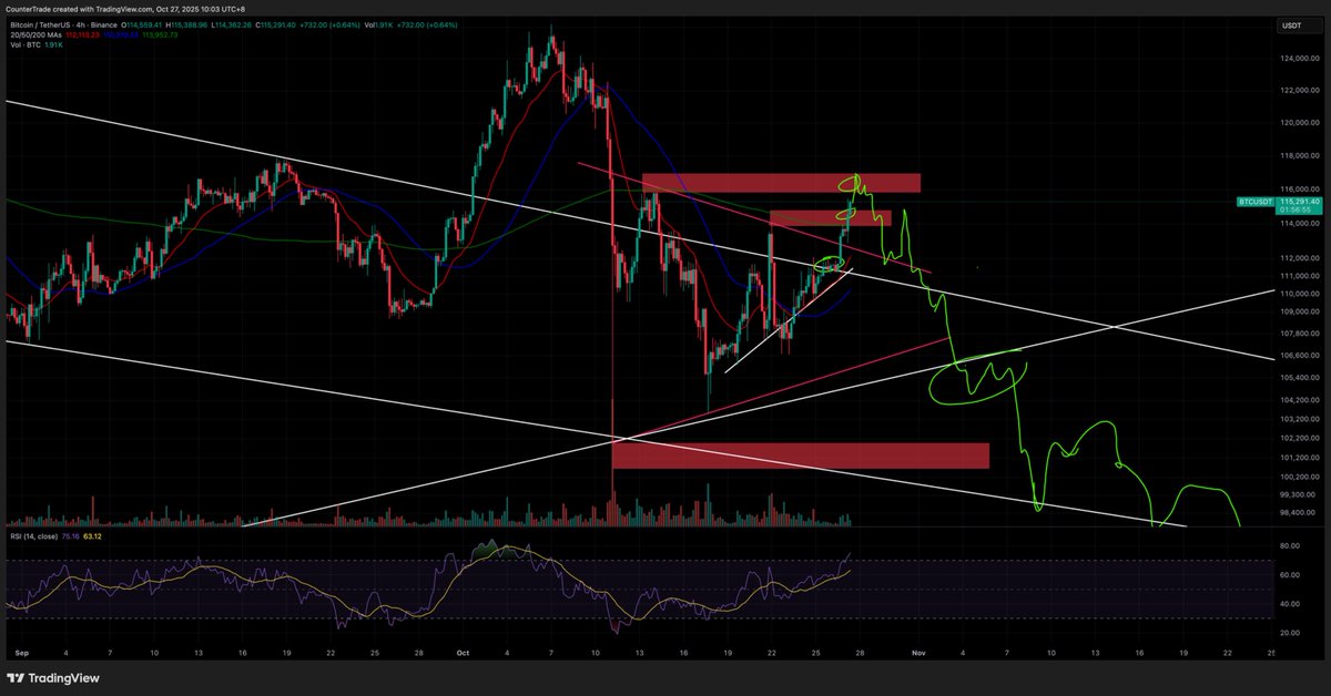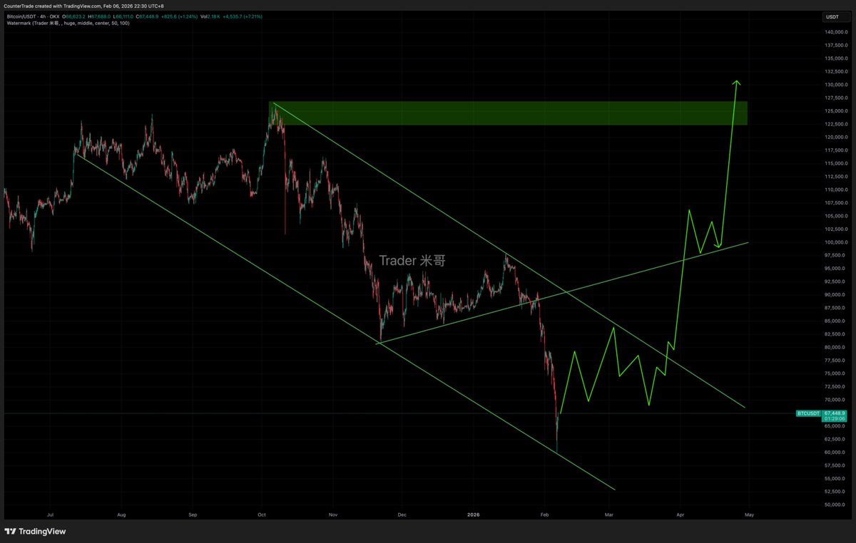 🪄后续怎么看?6w附近的反弹对应的点位是8.38w,到位可以清仓,会有反复,但整体来看图上的红色通道在我眼里是90%几率要突破的,突破后会有大量买盘进来,这个具体成为巨鲸砸盘的出货流动性还是会演变成一波史诗级逼空拉升还是得看那个时候的市场条件。