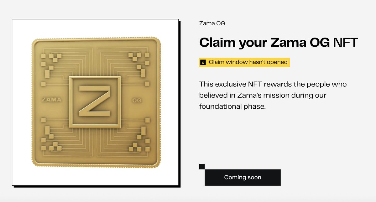 🔥融资130M FHE赛道龙头@zama_fhe OG NFT领取页面已上线