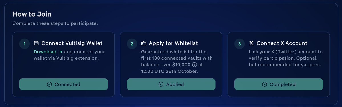 2️⃣晚上8点 $VULT @vultisig 白名单可以开始投入usdc,24小时后kraken上线,现在都没在榜单搜到名字死心了