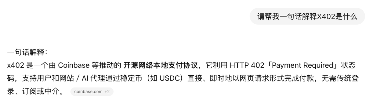 X402这波造福没跟上,我问GPT要一句话解释什么是X402,哦,就是@coinbase攒的局!