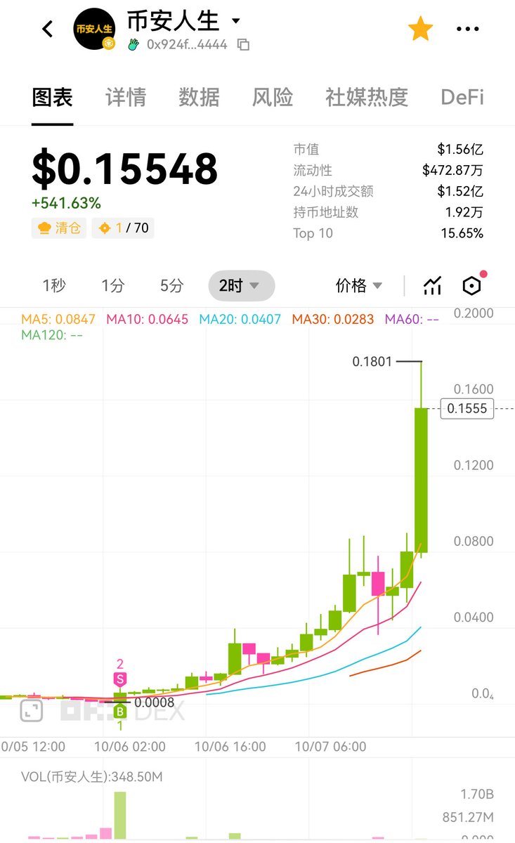 最近在BNB链上的中文MEME P了个昏天黑地,作为BNB的holder,价格不仅不断的新高,在这波大跌中反弹也最快,而且每个月还能源源不断的收到空投