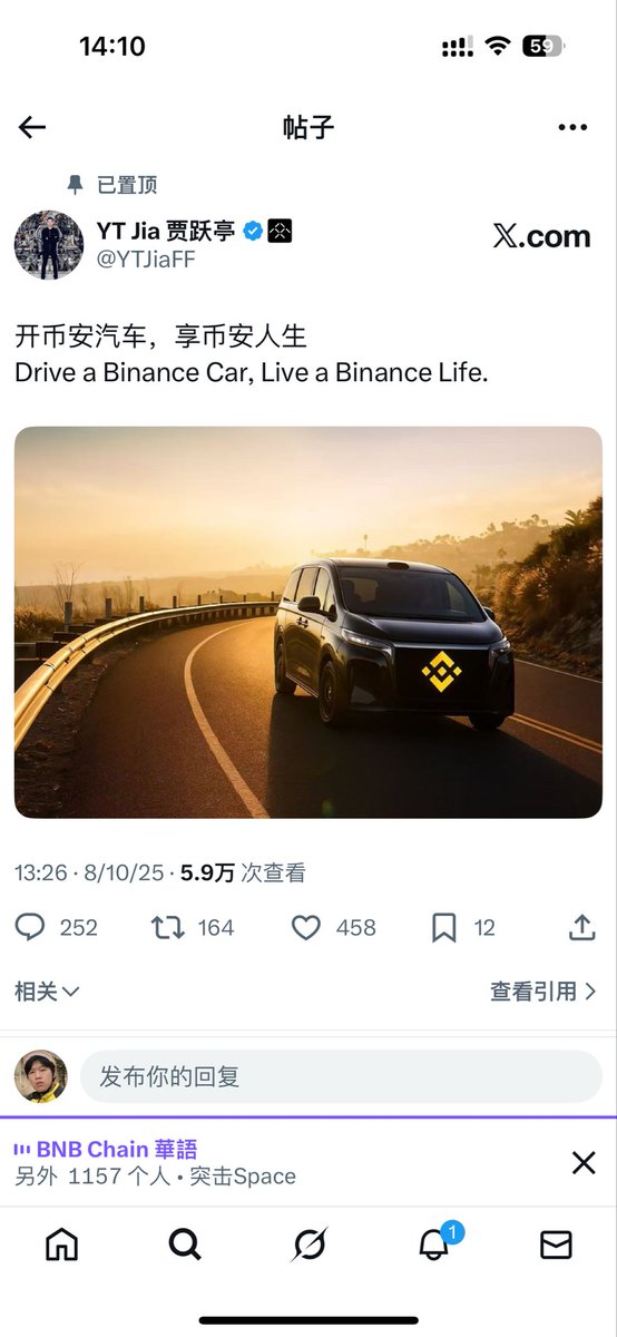 就贾跃亭@YTJiaFF 发的这条 #币安汽车 ,老外他得先翻译下币安汽车,然后再查查贾跃亭是谁,然后谷歌下贾跃亭的故事,然后大概率看不懂下周回国的梗,问中国朋友发生了什么,更别说乐视人生,下周回国这些衍生品了