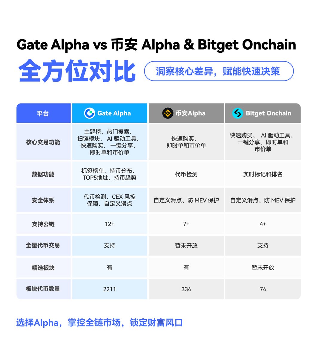 总体而言,Gate Alpha 的优势在于普通用户也能轻松把握 Web3 机遇,而非局限于专业玩家。相比竞品,它更注重低门槛和普惠生态,适合当前市场对效率与回报的双重需求
