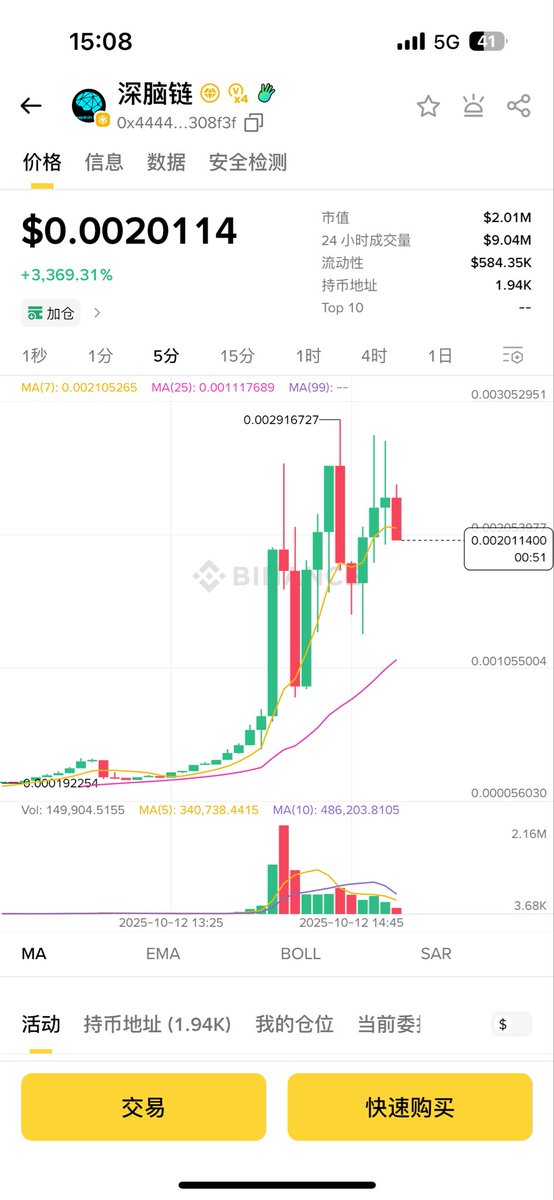 结果大概过了半个小时,手机直接发了推送,CZ还真回复了,虽然说的是不喜欢这种行为,但有了之前 $TST 的前车之鉴,才不到2M市值,还是猛拉了起来,我因为快要送晚高峰了,就出了本,剩下的挂了单,结果没多久就拉到了6M,拍断大腿