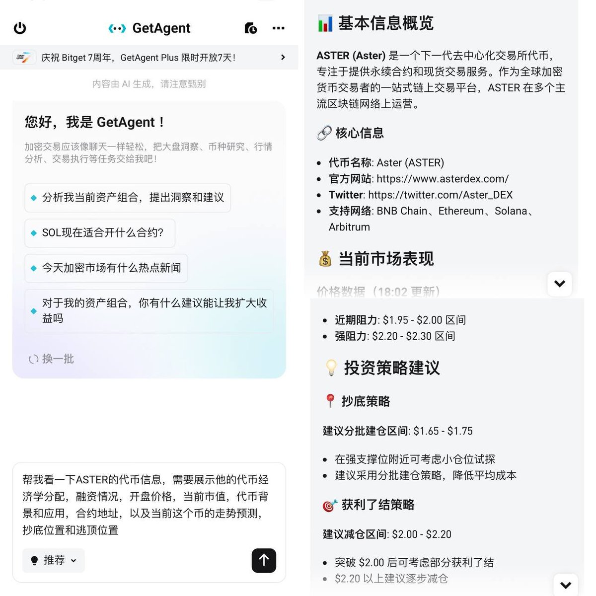 【帮我看一下ASTER的代币信息,需要展示他的代币经济学分配,融资情况,开盘价格,当前市值,代币背景和应用,合约地址,以及当前这个币的走势预测,抄底位置和逃顶位置】