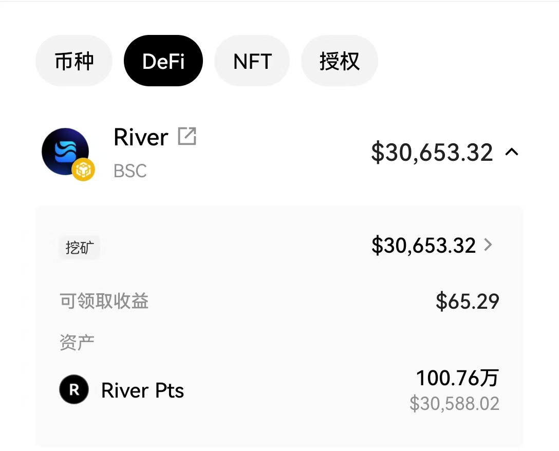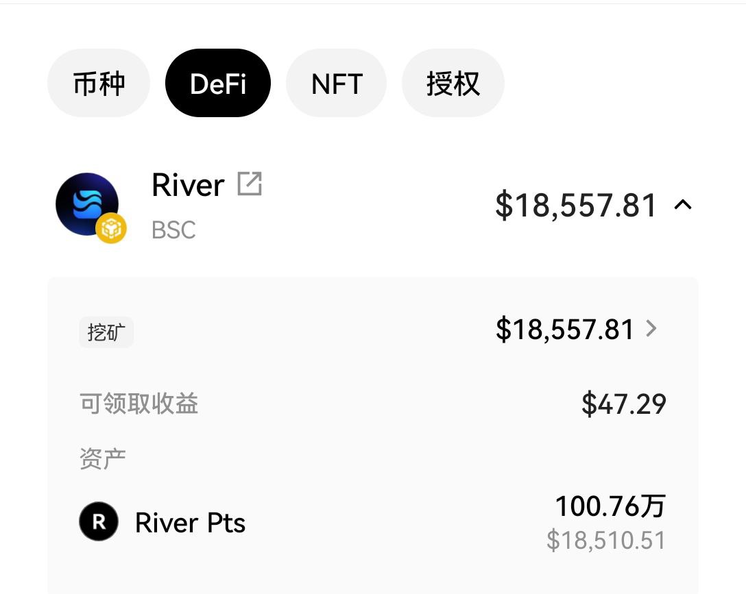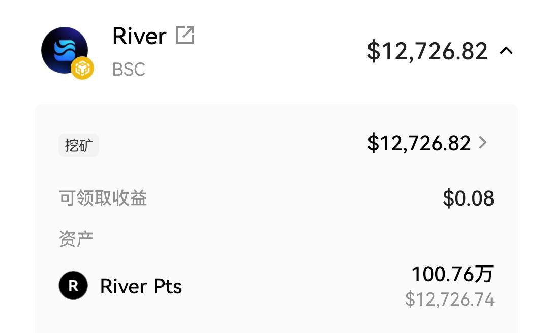 我之前撸了150万River Pts,一路卖一路飞,现在还剩100万,价值1.2万U,继续格局下去。