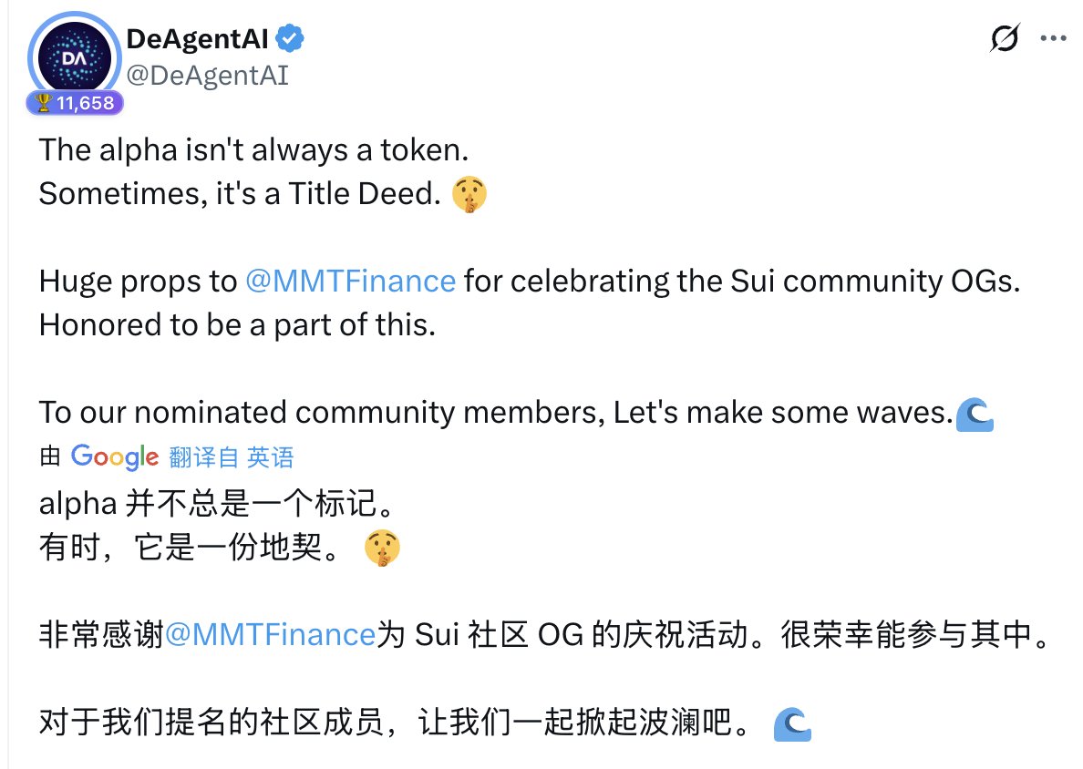 MMT老板曾公开站台AIA,称其为顶级Sui生态项目。