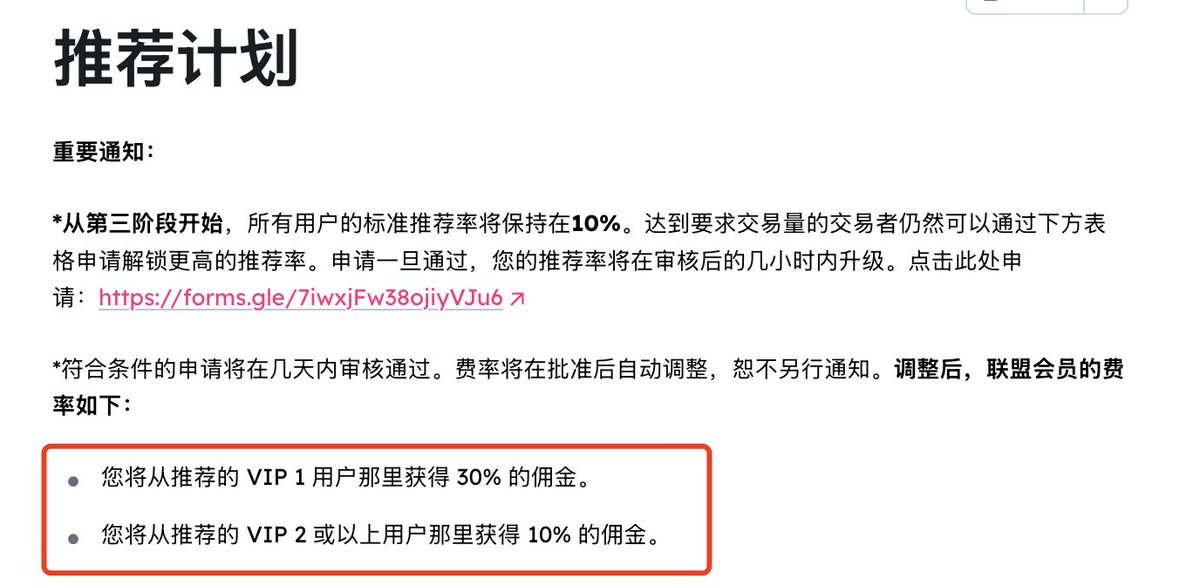 简单概括下最新规则:自S3起,所有用户的推荐返佣比例是10%;如果车队交易量达标,可以申请最高30%返佣比例,但是受邀用户实际拿到的返佣比例取决于账户等级。