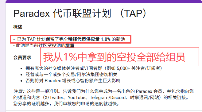 目前Paradex处于S2,预计明年1月结束,空投比例超过15%,一点也不卷。