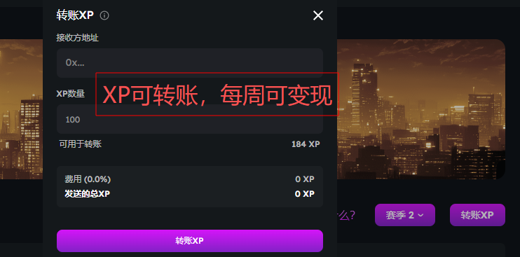⑤XP按周分发,今天已开放转移,你赚的XP随时可在场外变现