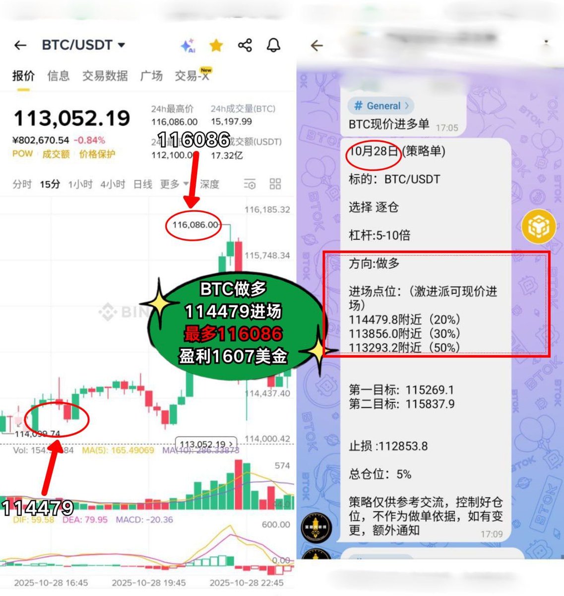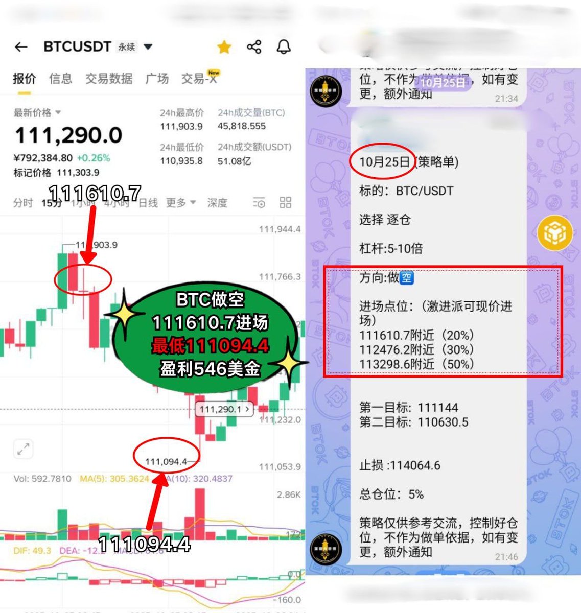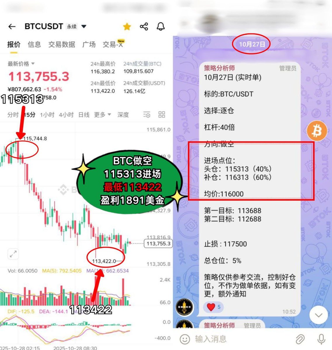 BTC做空 115313进场,强势盈利 1891美金