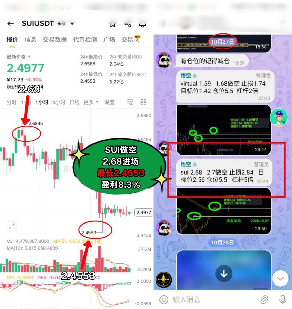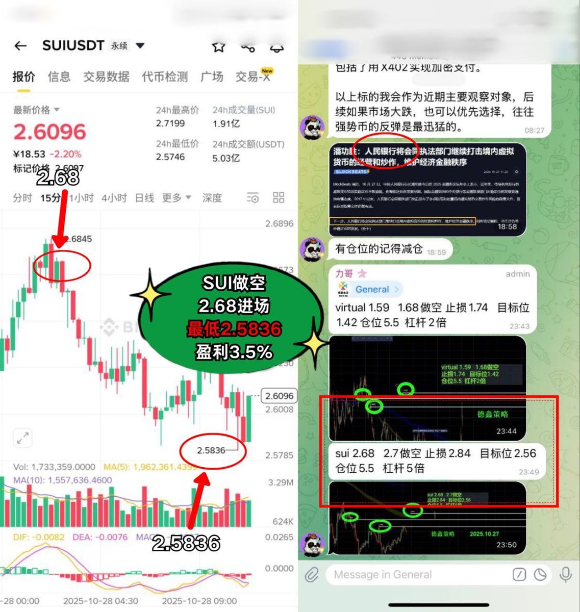 SUI做空 2.68进场,盈利 3.5%