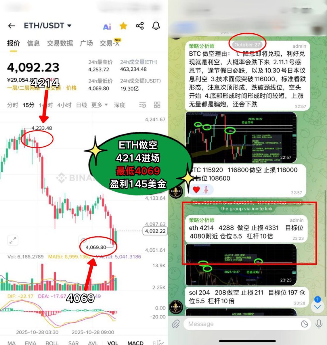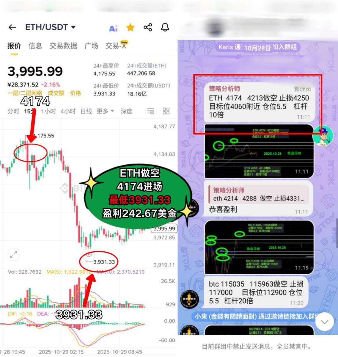 ETH做空:4174进场,精准盈利 242美金