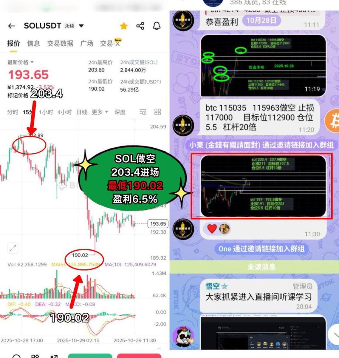 SOL做空:203.4进场,完美获利 6.5%