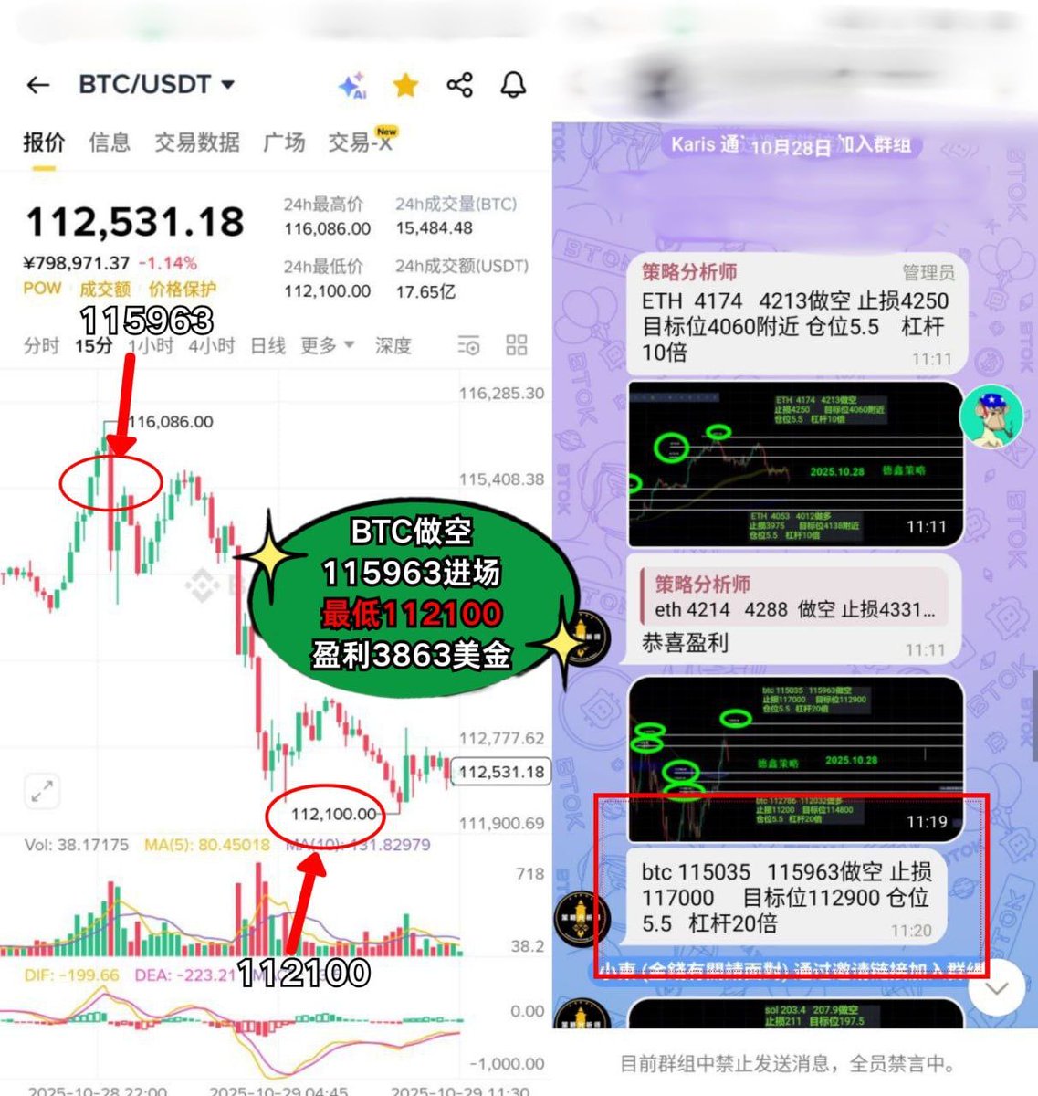 BTC做空:115963进场,强势盈利 3863美金
