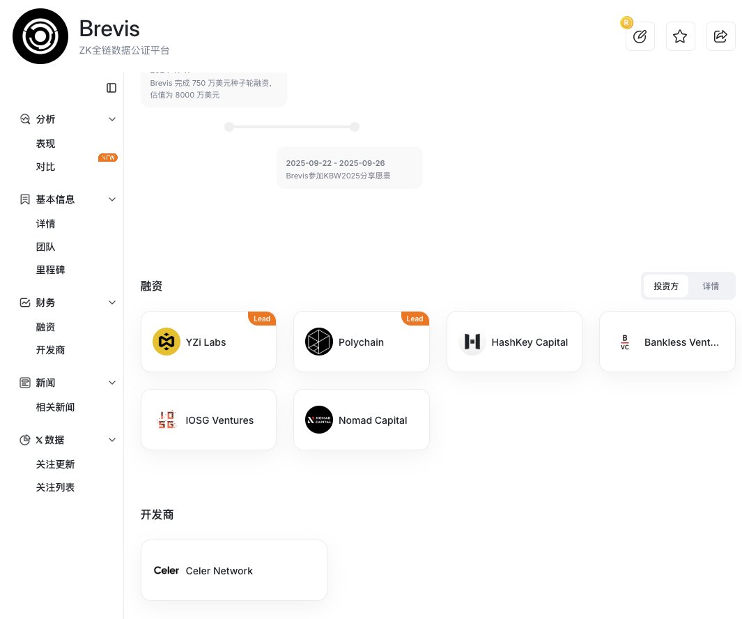 Brevis 曾获 Yzi labs、Polychain Capital投资,并且获得了Uniswap Foundation 的 Grant 激励。目前总融资金额 750 万美元。