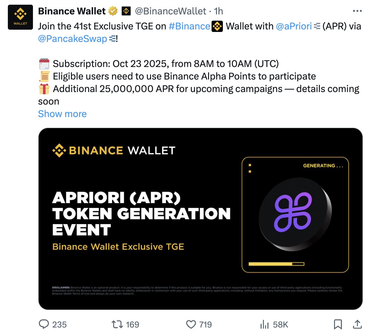 意料之中。Monad 生态龙头之一的 @aPriori 率先于Monad TGE 前启动TGE。