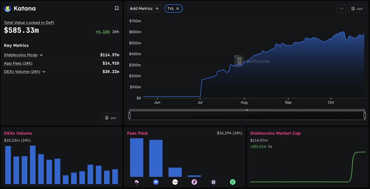 Katana 链上稳定币市值更是在一周时间暴涨了330%。太魔幻了。