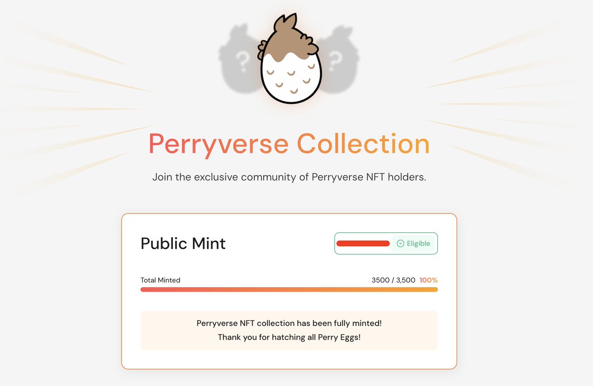 .@FalconStable 拿到NFT 白单资格的记得去官网mint 一下这个Perryverse NFT,WL 轮只开放24小时。