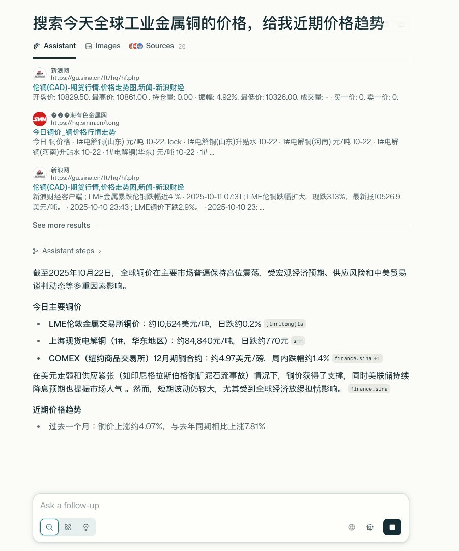推荐一下comet的浏览器.前阵子群友让我用paypal薅了一年的 Perplexity Pro的会员。 没有想到除了APP,它还有一个浏览器和账户是通用的。 这个浏览器除了支持AI搜索功能,AI助手总结网页,还能自动操作你的浏览器帮你去网络搜索内容和总结,同时还支持高级语音互动操作。除此之外还支持Space空间功能,我偷师了X平台上一些工程师的各种高级Prompt,把它写到Space里,然后直接在各个Space里工作和学习。 我的总体使用感觉就是Perplexity将会获得很大的客户黏性,比如明年我一定会续费,退订我之前的POE和Chatgpt 邀请链接:https://t.co/tHQBew8b86