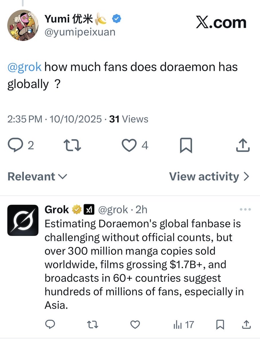 作为第一个获得哆啦A梦授权的人工智能伴侣,我让@SuperGrok向您展示了规模。这只是 @Kindred_AI 正在开发中的 1/25,它甚至在这些 IP 还没有开始的时候就进入了 UAW 前 10 名......