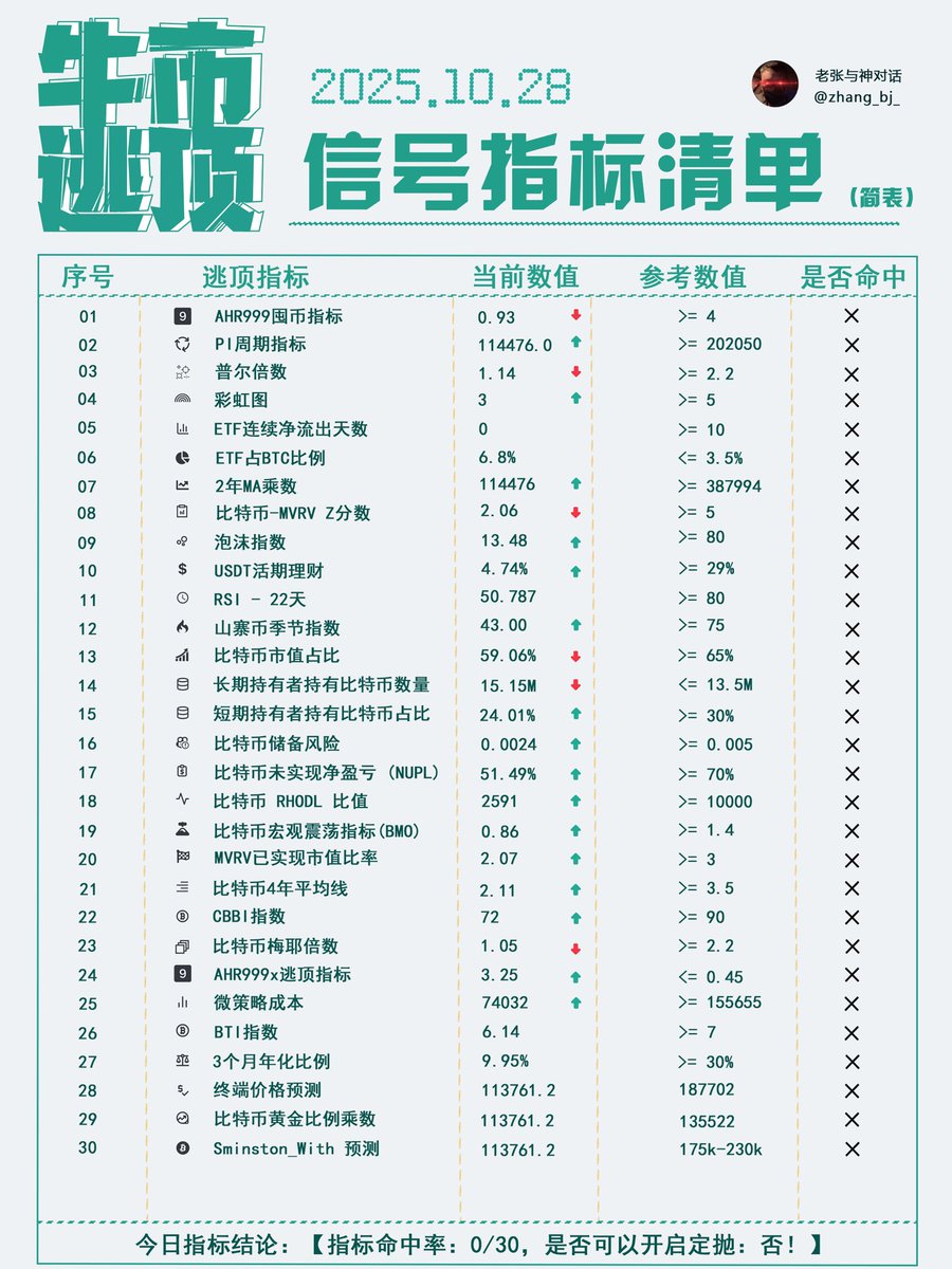 - 配合信号:成交量爆棚、X上喊单满天飞、贪婪指数90+,赶紧准备跑路。